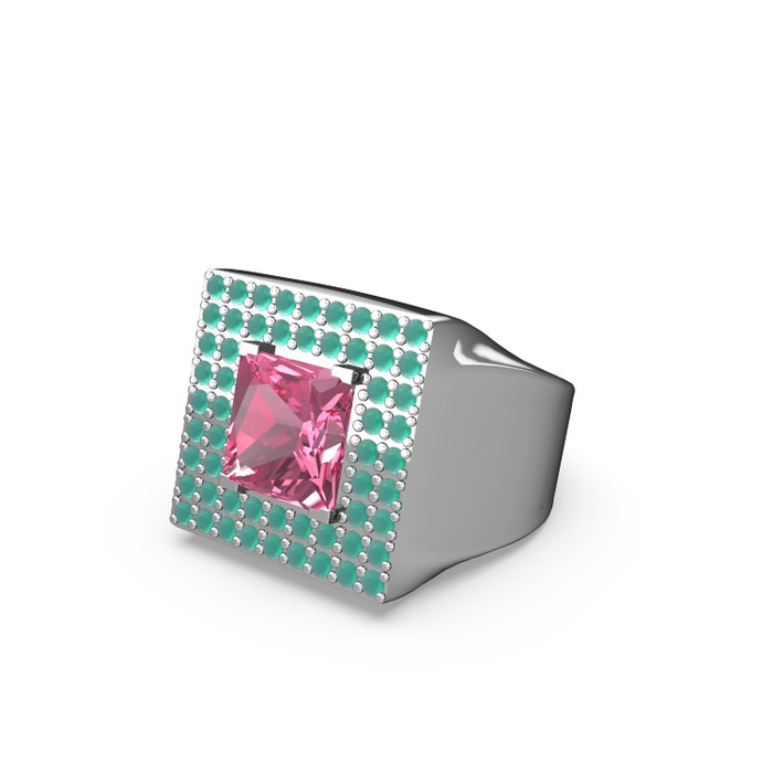 Pembe kuvars ve kök zümrüt 14 ayar beyaz altın yüzük