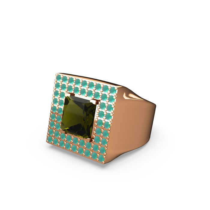 Peridot ve kök zümrüt 925 ayar rose altın kaplama gümüş yüzük