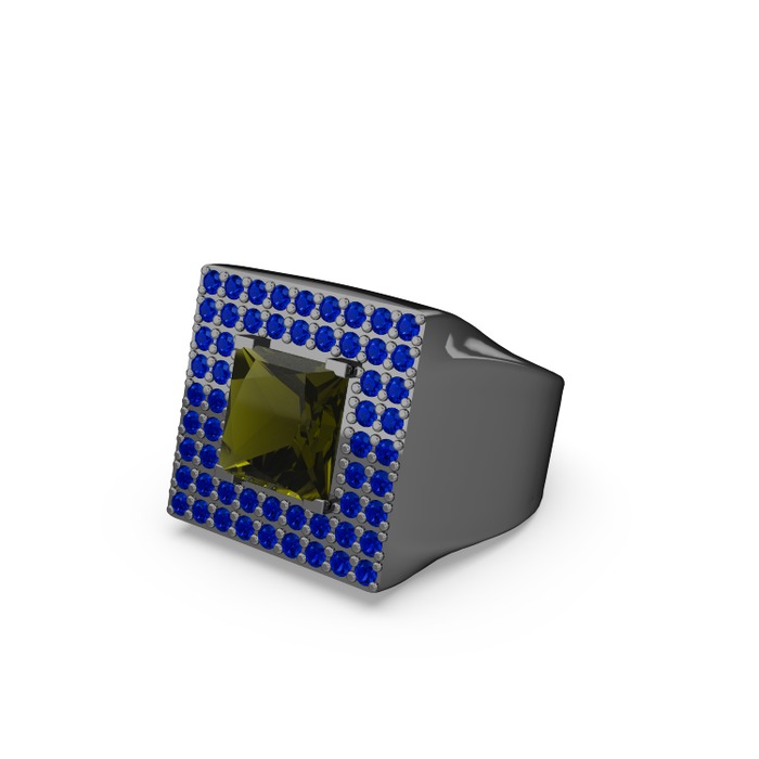 Peridot ve lab safir 925 ayar siyah rodyum kaplama gümüş yüzük