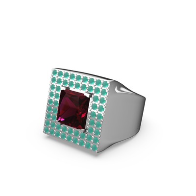 Rodolit garnet ve kök zümrüt 14 ayar beyaz altın yüzük