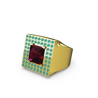 Rodolit garnet ve kök zümrüt 18 ayar altın yüzük