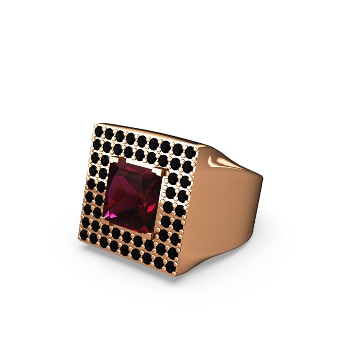 Rodolit garnet ve siyah zirkon 14 ayar rose altın yüzük