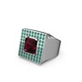 Rodolit garnet ve yeşil kuvars 18 ayar beyaz altın yüzük