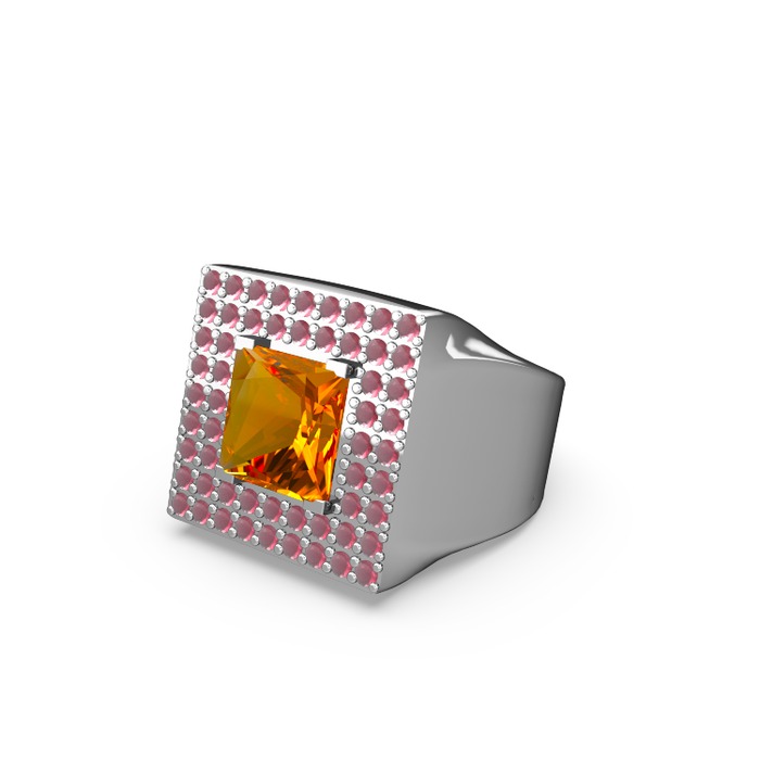 Sitrin ve kök yakut 14 ayar beyaz altın yüzük