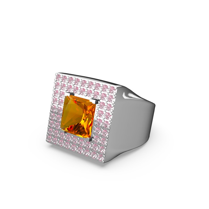 Sitrin ve pembe kuvars 18 ayar beyaz altın yüzük