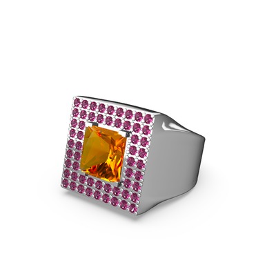 Sitrin ve rodolit garnet 18 ayar beyaz altın yüzük