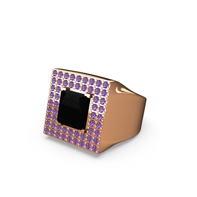 Siyah zirkon ve ametist 8 ayar rose altın yüzük
