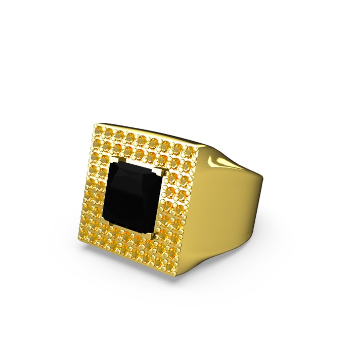Siyah zirkon ve sitrin 14 ayar altın yüzük
