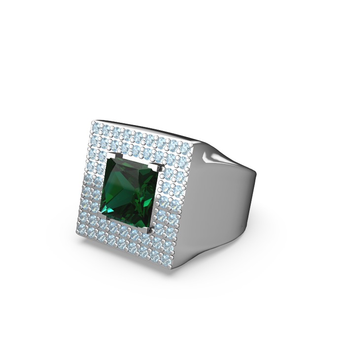 Yeşil kuvars ve akuamarin 14 ayar beyaz altın yüzük
