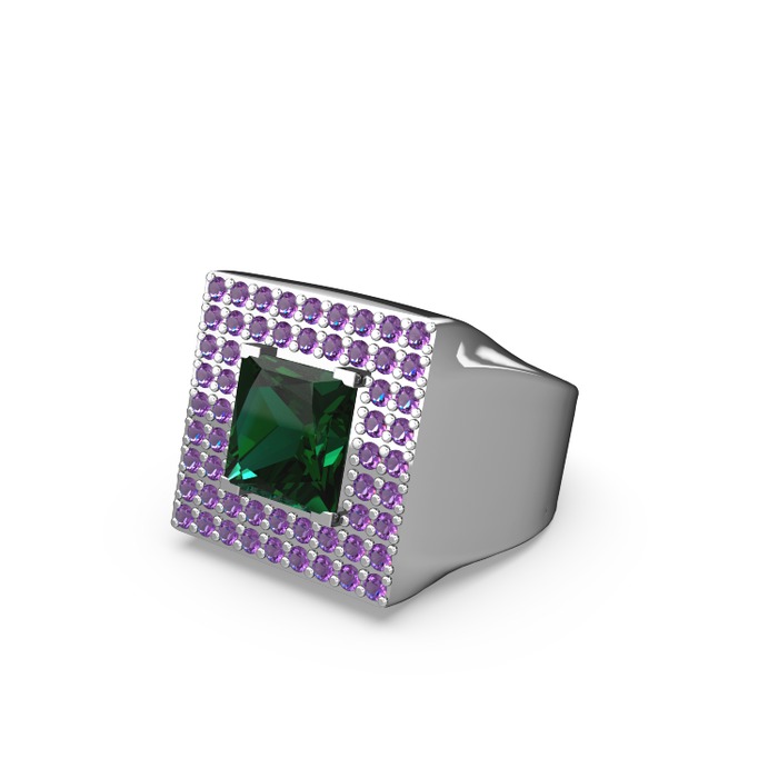 Yeşil kuvars ve ametist 18 ayar beyaz altın yüzük