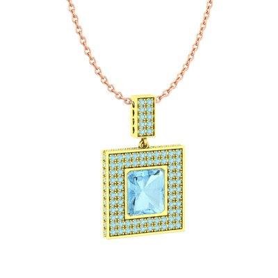 Akuamarin 14 ayar altın kolye (40 cm rose altın rolo zincir)