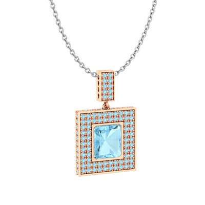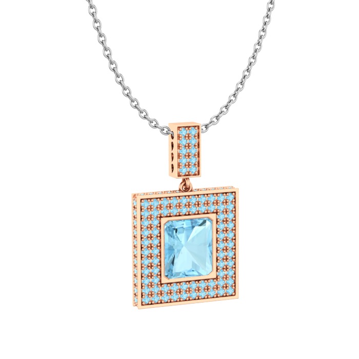 Akuamarin 8 ayar rose altın kolye (40 cm beyaz altın rolo zincir)