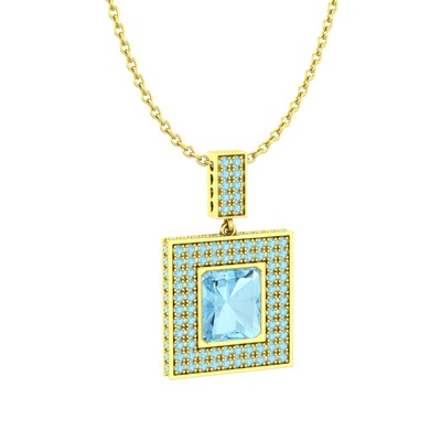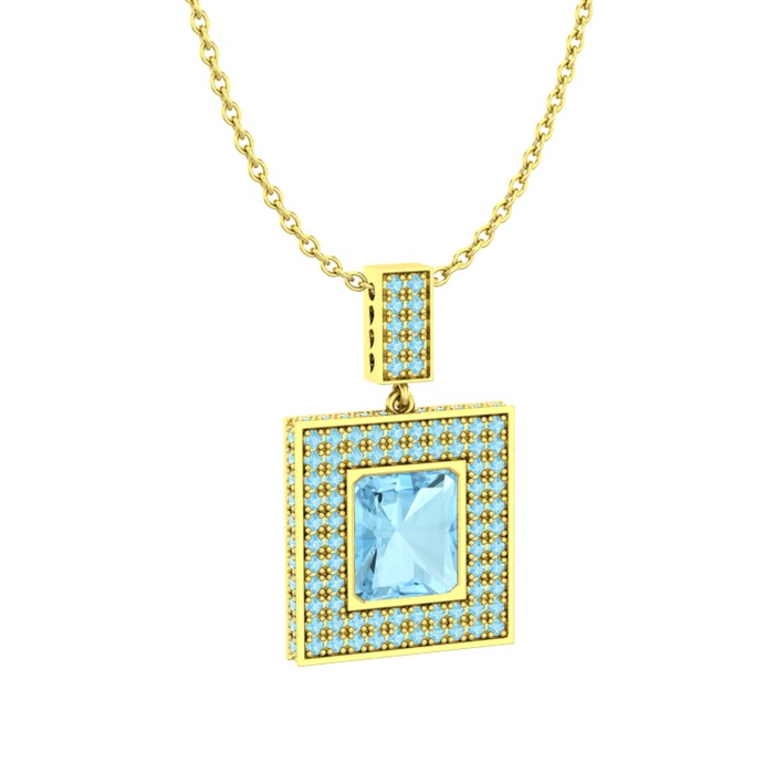 Akuamarin 925 ayar altın kaplama gümüş kolye (40 cm altın rolo zincir)