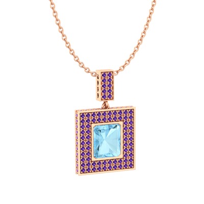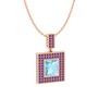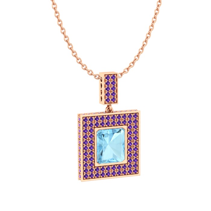 Akuamarin ve ametist 925 ayar rose altın kaplama gümüş kolye (40 cm rose altın rolo zincir)