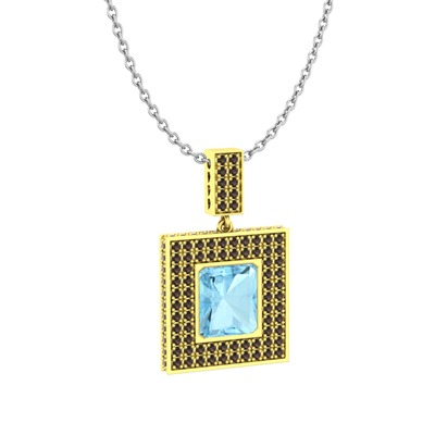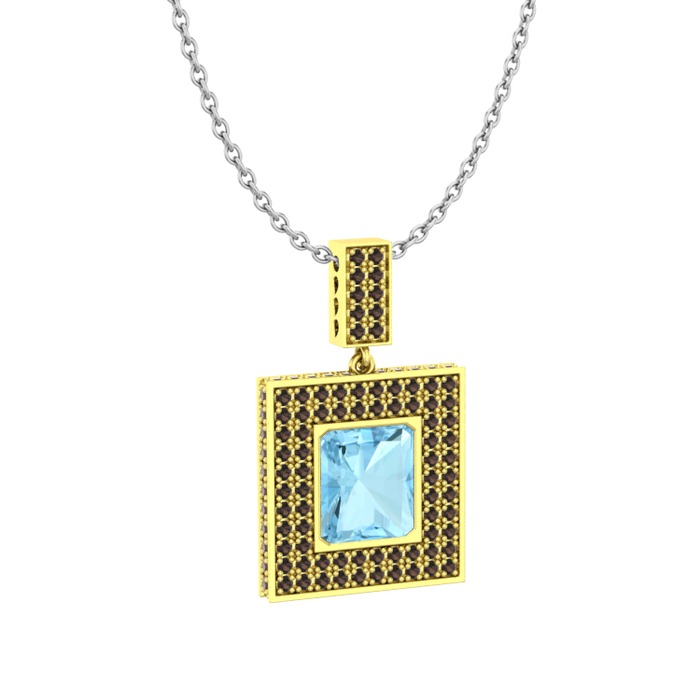 Akuamarin ve dumanlı kuvars 18 ayar altın kolye (40 cm gümüş rolo zincir)