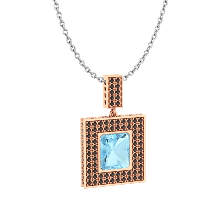 Akuamarin ve dumanlı kuvars 18 ayar rose altın kolye (40 cm beyaz altın rolo zincir)