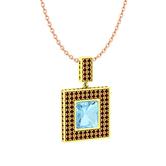 Akuamarin ve garnet 14 ayar altın kolye (40 cm rose altın rolo zincir)