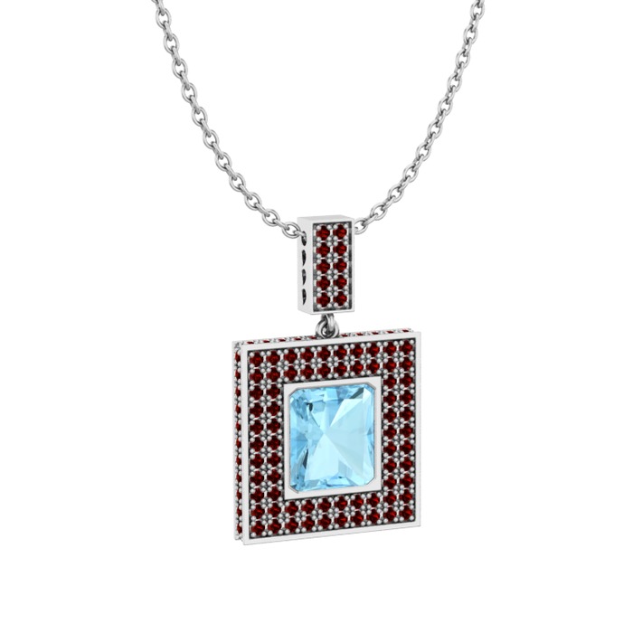 Akuamarin ve garnet 14 ayar beyaz altın kolye (40 cm gümüş rolo zincir)