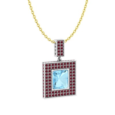 Akuamarin ve kök yakut 18 ayar beyaz altın kolye (40 cm altın rolo zincir)