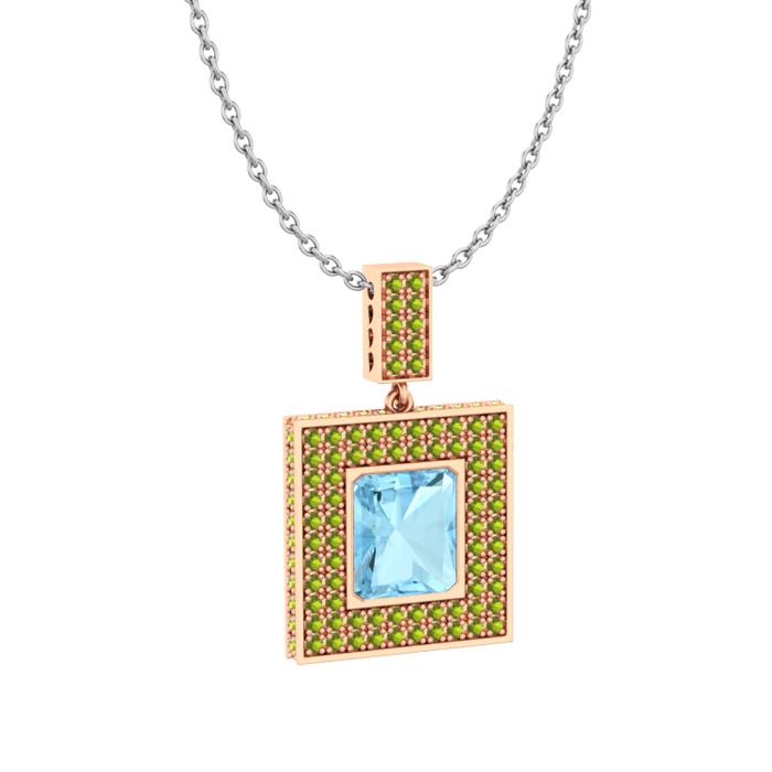 Akuamarin ve peridot 18 ayar rose altın kolye (40 cm beyaz altın rolo zincir)