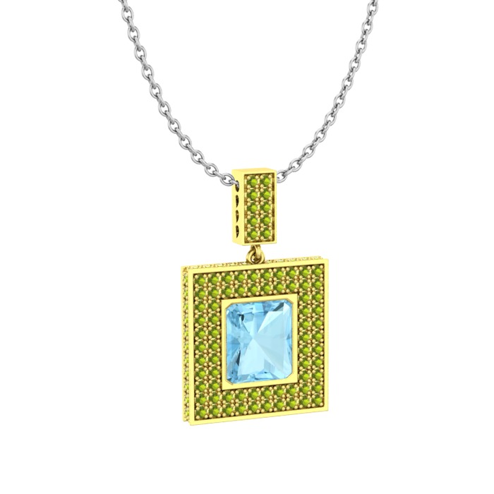 Akuamarin ve peridot 8 ayar altın kolye (40 cm beyaz altın rolo zincir)
