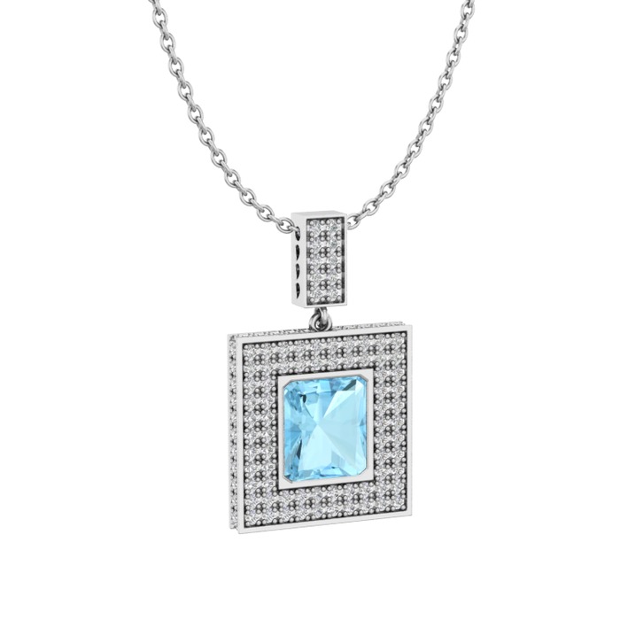 Akuamarin ve pırlanta 18 ayar beyaz altın kolye (2.808 karat, 40 cm beyaz altın rolo zincir)