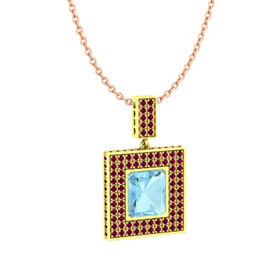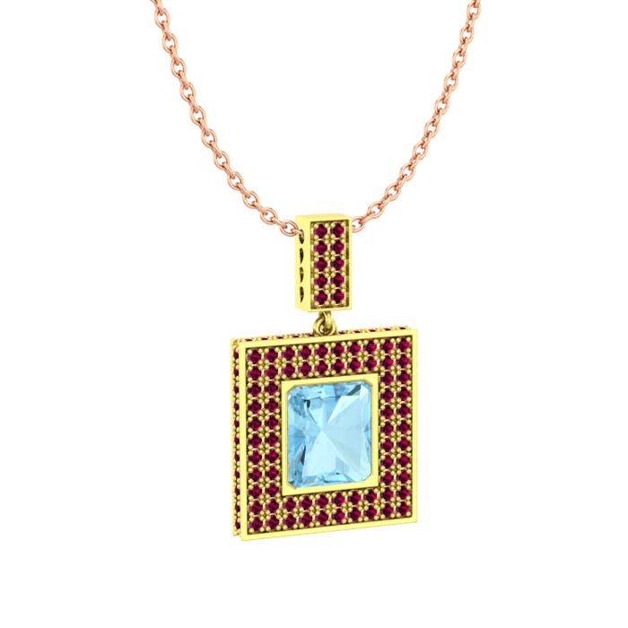 Akuamarin ve rodolit garnet 18 ayar altın kolye (40 cm rose altın rolo zincir)