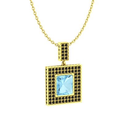 Akuamarin ve siyah zirkon 8 ayar altın kolye (40 cm altın rolo zincir)