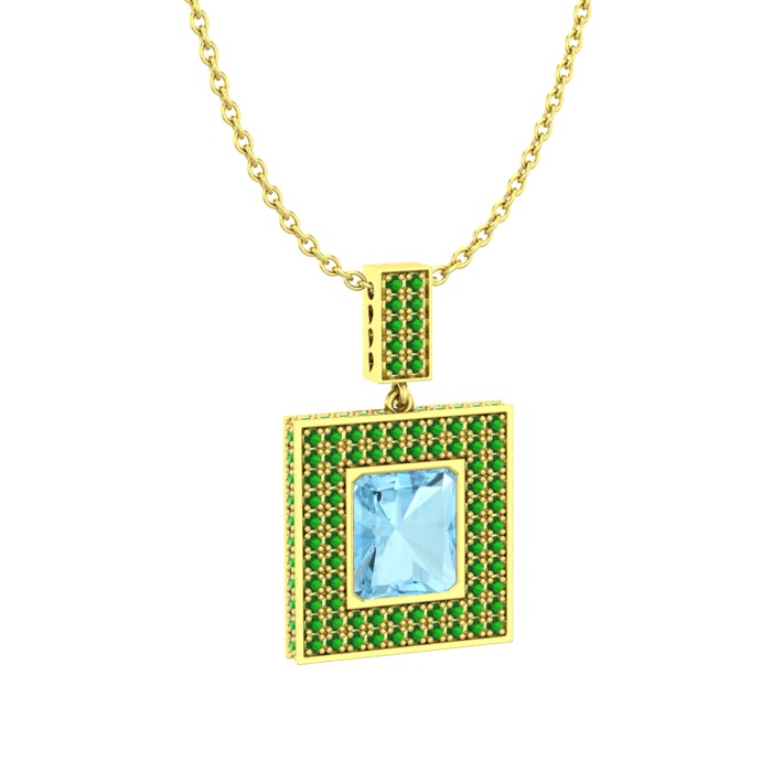 Akuamarin ve yeşil kuvars 8 ayar altın kolye (40 cm altın rolo zincir)