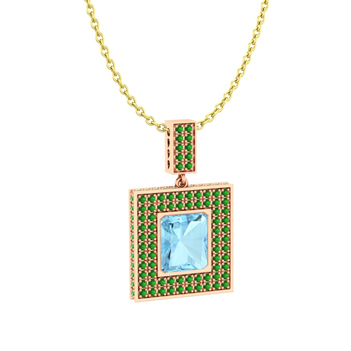 Akuamarin ve yeşil kuvars 925 ayar rose altın kaplama gümüş kolye (40 cm gümüş rolo zincir)