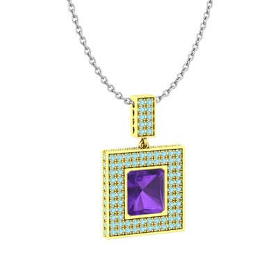 Ametist ve akuamarin 8 ayar altın kolye (40 cm beyaz altın rolo zincir)