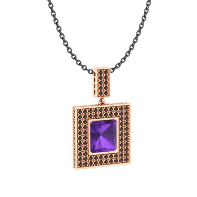 Ametist ve dumanlı kuvars 18 ayar rose altın kolye (40 cm gümüş rolo zincir)