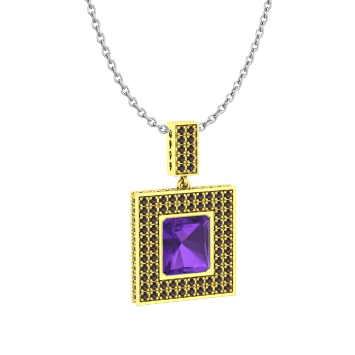 Ametist ve dumanlı kuvars 8 ayar altın kolye (40 cm beyaz altın rolo zincir)