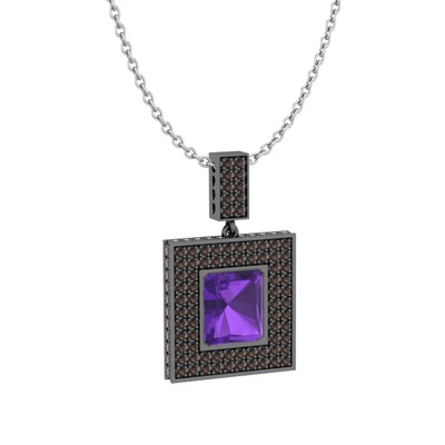 Ametist ve dumanlı kuvars 925 ayar siyah rodyum kaplama gümüş kolye (40 cm beyaz altın rolo zincir)