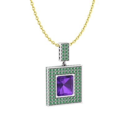 Ametist ve kök zümrüt 18 ayar beyaz altın kolye (40 cm altın rolo zincir)