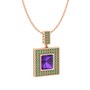 Ametist ve kök zümrüt 925 ayar rose altın kaplama gümüş kolye (40 cm rose altın rolo zincir)