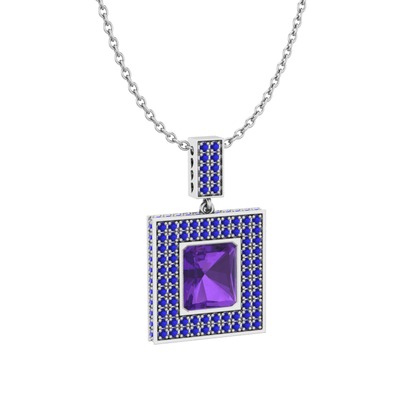 Ametist ve lab safir 18 ayar beyaz altın kolye (40 cm beyaz altın rolo zincir)