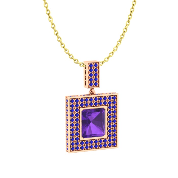 Ametist ve lab safir 8 ayar rose altın kolye (40 cm altın rolo zincir)