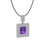 Ametist ve pırlanta 8 ayar beyaz altın kolye (2.808 karat, 40 cm gümüş rolo zincir)