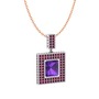 Ametist ve rodolit garnet 925 ayar gümüş kolye (40 cm rose altın rolo zincir)