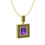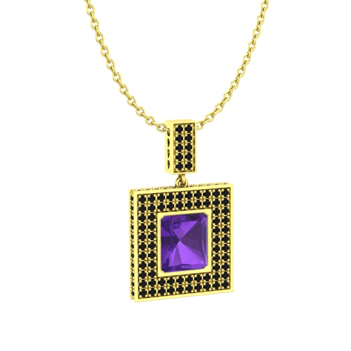 Ametist ve siyah zirkon 14 ayar altın kolye (40 cm gümüş rolo zincir)