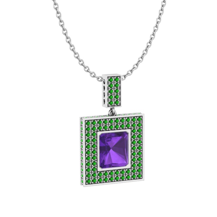 Ametist ve yeşil kuvars 18 ayar beyaz altın kolye (40 cm beyaz altın rolo zincir)