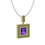 Ametist ve yeşil kuvars 8 ayar rose altın kolye (40 cm beyaz altın rolo zincir)