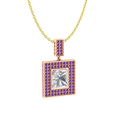 Beyaz zirkon ve ametist 14 ayar rose altın kolye (40 cm altın rolo zincir)