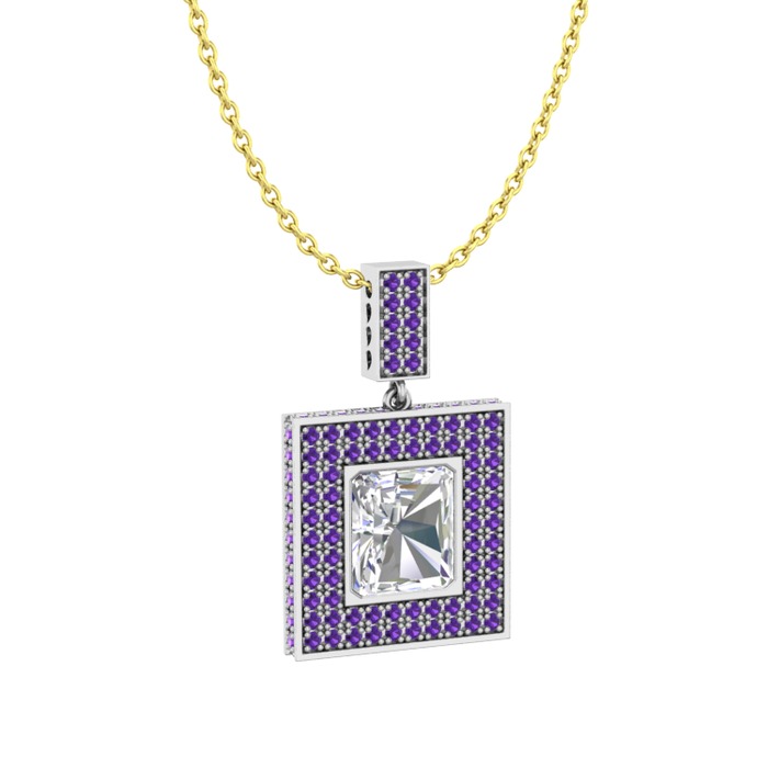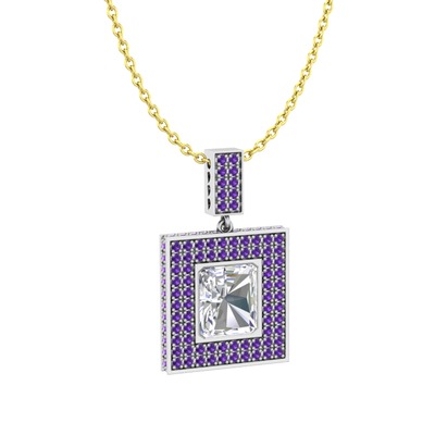 Beyaz zirkon ve ametist 8 ayar beyaz altın kolye (40 cm altın rolo zincir)