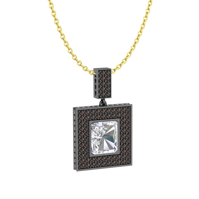 Beyaz zirkon ve dumanlı kuvars 925 ayar siyah rodyum kaplama gümüş kolye (40 cm altın rolo zincir)