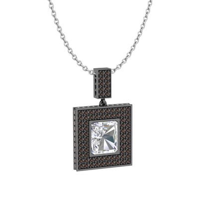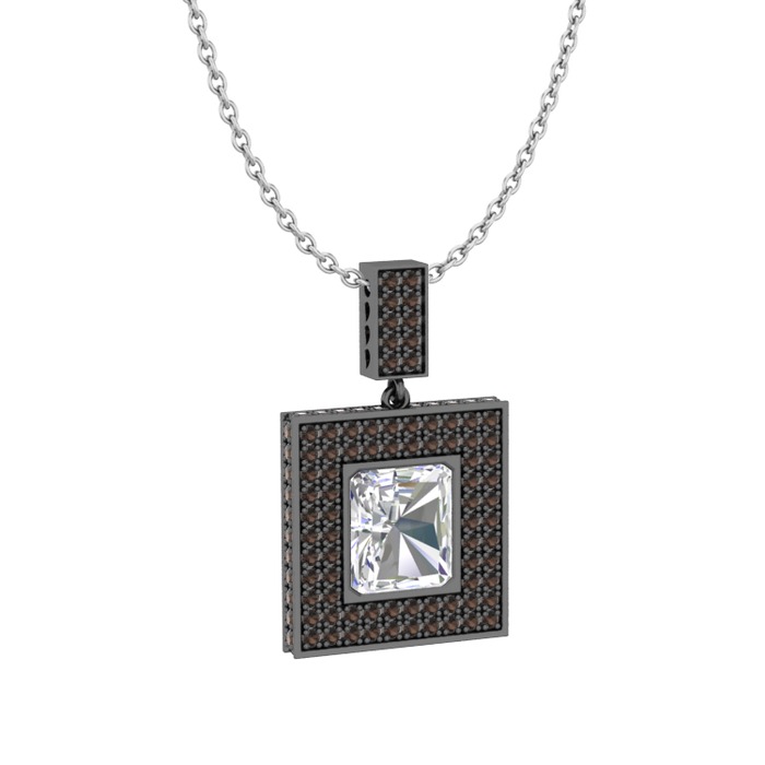 Beyaz zirkon ve dumanlı kuvars 925 ayar siyah rodyum kaplama gümüş kolye (40 cm beyaz altın rolo zincir)