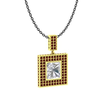 Beyaz zirkon ve garnet 8 ayar altın kolye (40 cm gümüş rolo zincir)