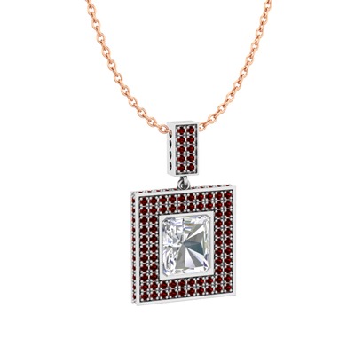 Beyaz zirkon ve garnet 925 ayar gümüş kolye (40 cm rose altın rolo zincir)