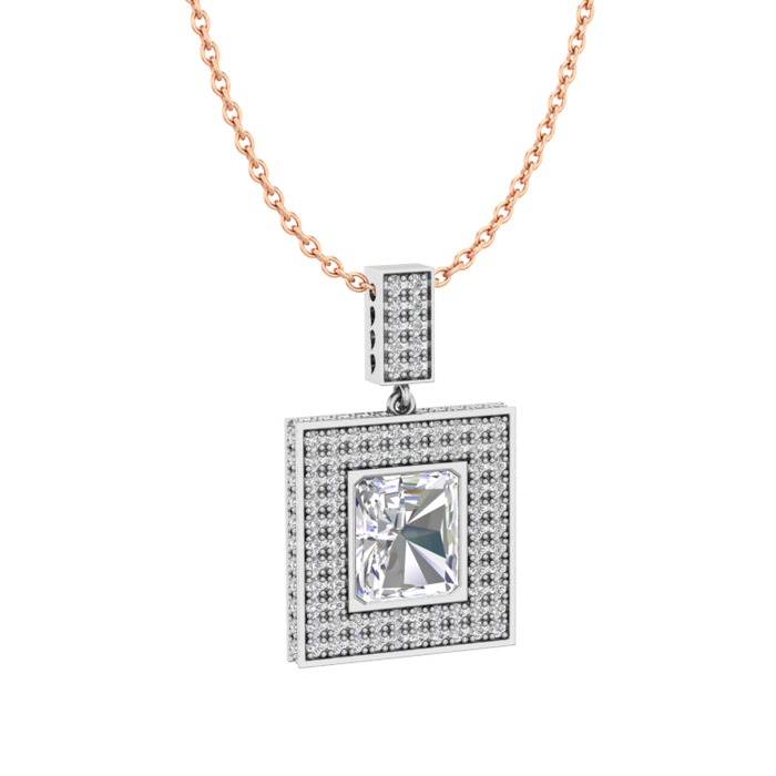 Beyaz zirkon 925 ayar gümüş kolye (40 cm rose altın rolo zincir)